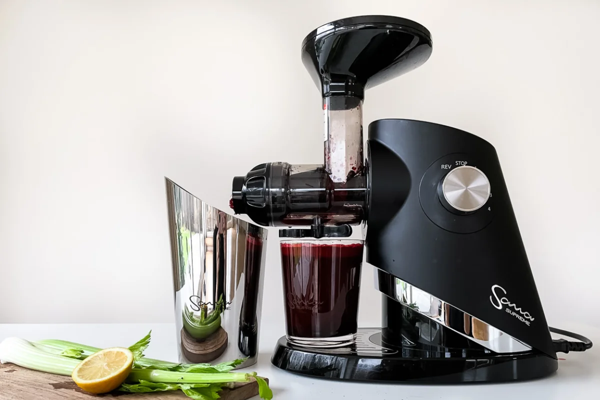 Sana Supreme 727 to zdecydowanie najlepsza wyciskarka do codziennego użytkowania. Skuteczność wyciskania, jakość soku, łatwość montażu i mycia sprawia, że jest to mój numer jeden. Dodatkowo Supreme 727 posiada bardzo zaawansowane funkcje, których próżno szukać w innych wyciskarkach na rynku. Jeśli budżet na to pozwala warto rozważyć stalową wersję – Sana Ultimate 929.