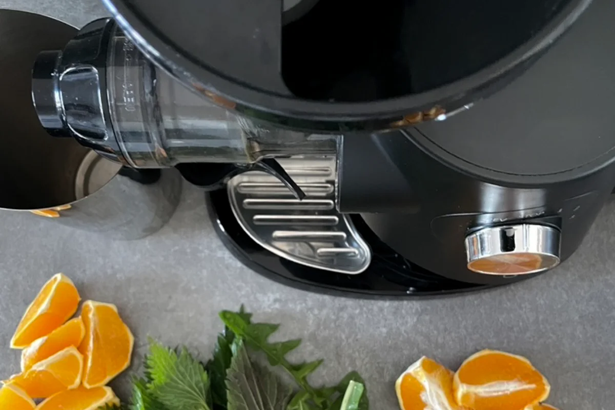 To najlepsza wyciskarka pionowa jaką miałam. Wyciskanie całych składników bez krojenia jest szybkie i płynne. Specjalny nożyk tnący w ślimaku świetnie daje radę z selerem naciowym. Uniwersalna wyciskarka dla całej rodziny.